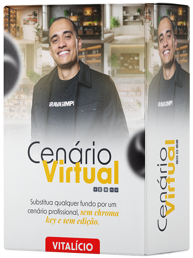 O Cenário Virtual é um pacote pronto que permite substituir o fundo real das suas gravações, reuniões e lives por cenários profissionais, sem precisar de pano verde (chroma key) e sem edição.